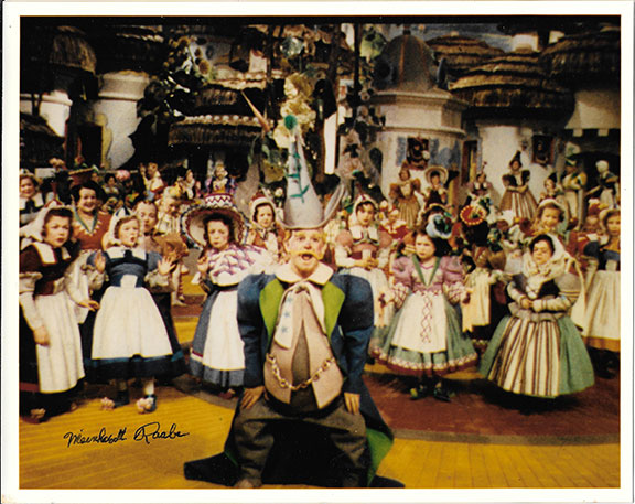 RAAB, Reinhardt (1915-2010). American actor. Munchkin in the Wizard of Oz. Played the part of the coroner. He certified the death of the Wicked Witch of the East. Wonderful color photograph, 8”x10” of Meinhardt Raab in the Wizard of Oz. Signed with excellent contrast..................................$47.50 |