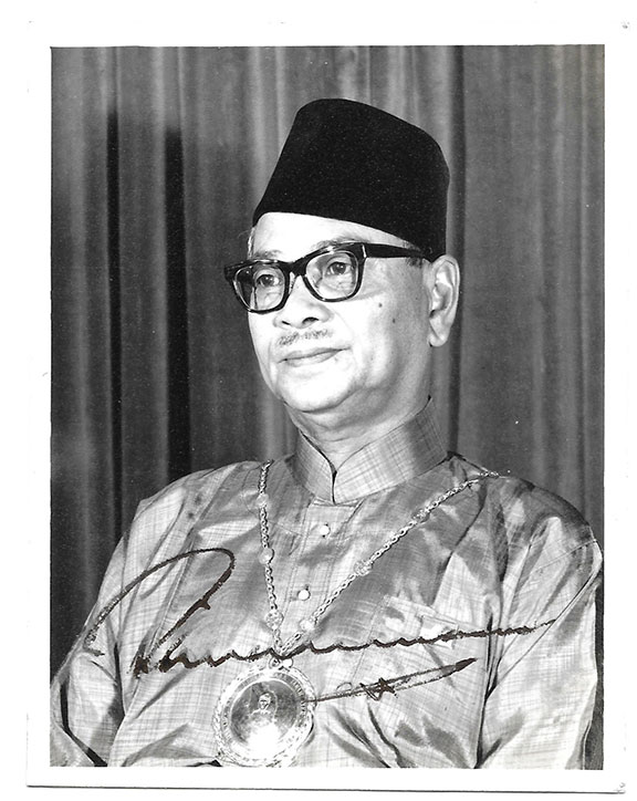 RAHMAN, Tunku Abdul (1903-1990). First prime Minister of Malaysia, Called “The Founding Father of Malaysia” and “The Father of Independence.” Malaysia gained Independence from Britain in 1957 without bloodshed. Uncommon photograph, B&W, 3.75”x4.5” head and shoulders pose. Boldly signed. In fine condition..................$150.00