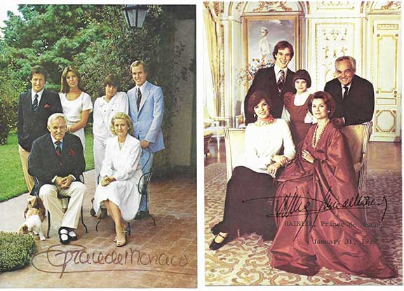 RAINIER III, Prince (1923-2005) Prince of Monaco (1949-2005). One of the longest living Monarchs in European history. Postcard photograph of Prince Rainier ad his family, taken in the palace in Monaco. Signed in full. Typed below, “Rainier, Prince de Monaco. January 31, 1979”. In mint condition.