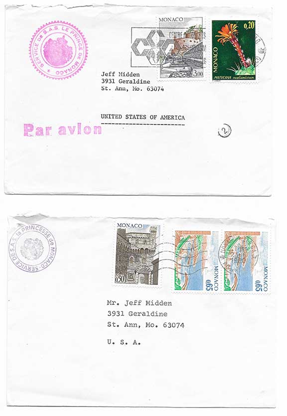 KELLY, Grace Patricia (1929-1982). American film actress. She is listed as number 13 among the top 25 of the American Film Institute’s greatest female stars. In April of 1956 she married Prince Rainier III of Monaco. Postcard photograph of Princess Grace along with her family in the Palace Garden. Boldly signed “Grace de Monaco’. Striking. The matching pair with two original envelopes......................................$575.00