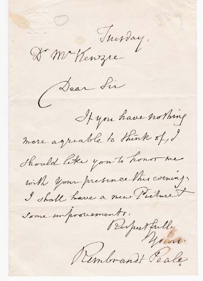 on embossed letterhead, Tuesday, no place or date, to Dr. McKenzie.