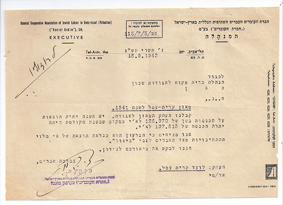 REMEZ, David (1886-1951). Israeli Labor leader. In 1923 he settled in Palestine and became a leader in the Socialist Party. On March 1, 1948 he proposed the establishment of the provisional government. With Ben-Gurion he was one of the leaders of the move towards statehood. Member of the first two Knessets. Typed letter signed, one page, Sept. 18, 1942 on the imprinted stationery of General Cooperative Association of Jewish Labor in Eretz, Israel. VG-Fine condition..................................$125.00
