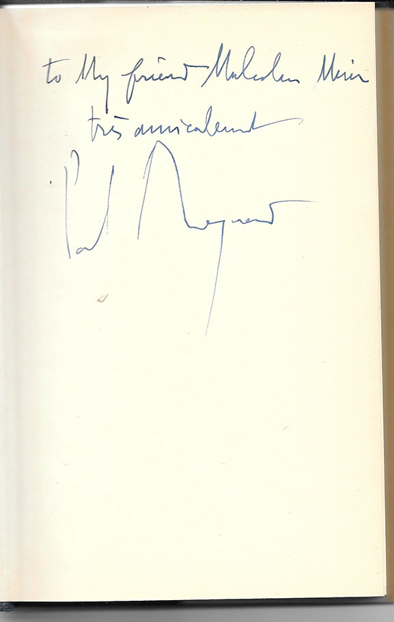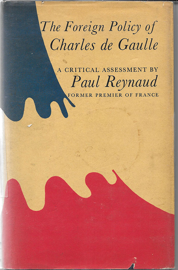 REYNAUD, Paul (1878-1966).. French politician. Prime Minister of France from 21 March 1940-16 June 1940. The Battle of France began just two months after Reynaud came to office. He was instrumental in launching the allied campaign in Norway. After fleeing France he was arrested, surrendered to German custody in 1942 and imprisoned. His book: “The Foreign Policy of Charles de Gaulle.” The Odyssey Press, N.Y. 1964. One hundred sixty pages. Inscribed and signed by Paul Reynaud on the front free endpaper. In very fine condition with dust jacket................$165.00