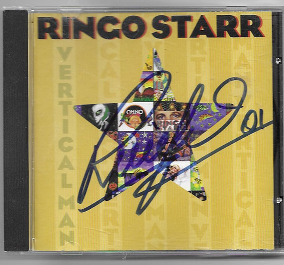 STARR, Ringo (1940- ) Beatles drummer who went onto a successful solo career. His CD “Vertical Man”, 1998 Mercury Records. Very boldly signed and dated on the front of the color cover “Ringo 01.” In very fine condition....................SOLD![]() |