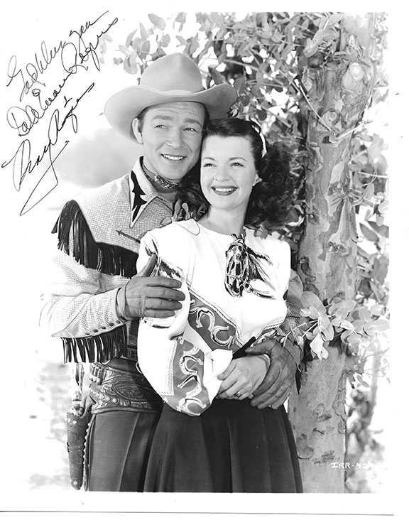 ROGERS, Roy (1912-1998) EVANS, Dale (1912-2001). Roy is known as “The King of the Cowboys.” Choice B&W photograph of the pair,8”X10” dressed in their finest western outfits. Roy his arms around Dale and both are smiling. Signed by Roy Rogers. Dale has written: “God Bless You Dale Evans Rogers.” As nice a photo as one can imagine From the Frank Matheny collection.......95.00 |