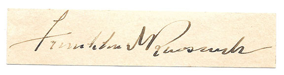 ROOSEVELT, Franklin D. (1882-1945). Thirty second President of the United States. Wonderful dark, bold full signature on a slip.................SOLD