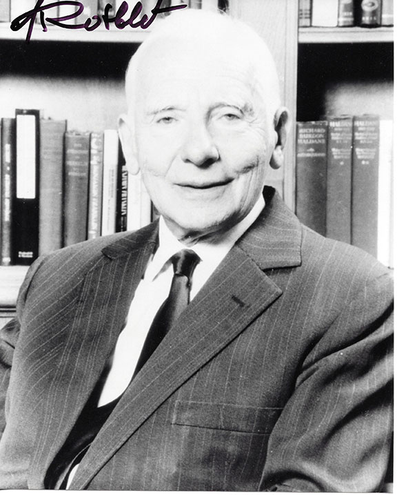 ROTBLAT, Joseph (1908-2005). British, Polish Jewish physicist. Awarded the 1995 Nobel Peace Prize. Worked on the Atomic Bomb at Los Alamos in 1944. He was one of the most prominent critics of the nuclear arms race. Uncommon photograph, B&W, 8”x10”, half length pose smiling. Very boldly signed and in excellent condition. Scarce in signed photographs of this size. In very fine condition...........$85.00 |