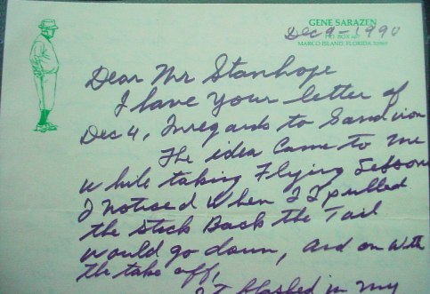 holding an iron. Dec. 9, 1990, Sarazen writes in part: