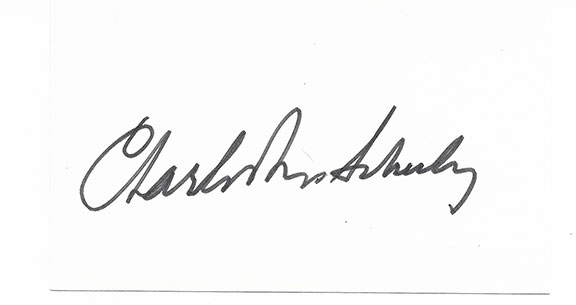 SCHULZ, Charles (1922-2000). American comic-strip artist. Creator of the extremely popular comic strip Peanuts. Fabulous and quite scarce 3”x5” card with an extremely bold and large signature. With original envelope postmarked “1979.” In Mint condition......................$375.00![]() |