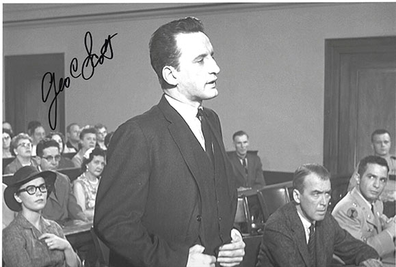 SCOTT, George C. (1927-1999). American actor, director, and producer. His career was both on the stage and screen. He became known for his portrayal of a stern, complex figure such as the prosecutor Claude Dancer in “Anatomy of a Murder (1959).” Later is appearance as Patton (1970) became a smash hit. Scarce movie still from “Anatomy of a Murder” of Scott in court standing next to Jimmy Stewart. Boldly signed by George C. Scott. Together with a COA from a Hollywood firm. In fine condition...........................$295.00