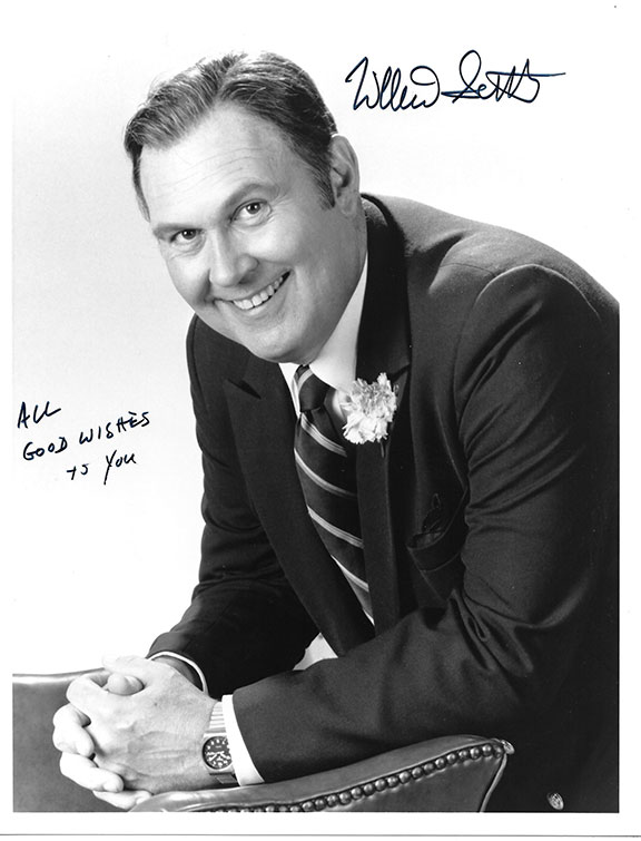 SCOTT, Willard (1934- ) American entertainer who was “Bozo the Clown” (1959-1962). He was invited by President Kennedy to The White House birthday party to entertain Caroline Kennedy. Scott also played Santa Claus at various White House events. He created and was the original Ronald McDonald (1963-71). For years he was the weatherman on The Today Show. Photograph, 8”x10”, B&W, half length pose of Scott smiling. Signed with a five word sentiment: “All Good Wishes To You.” In fine condition...........................$47.50