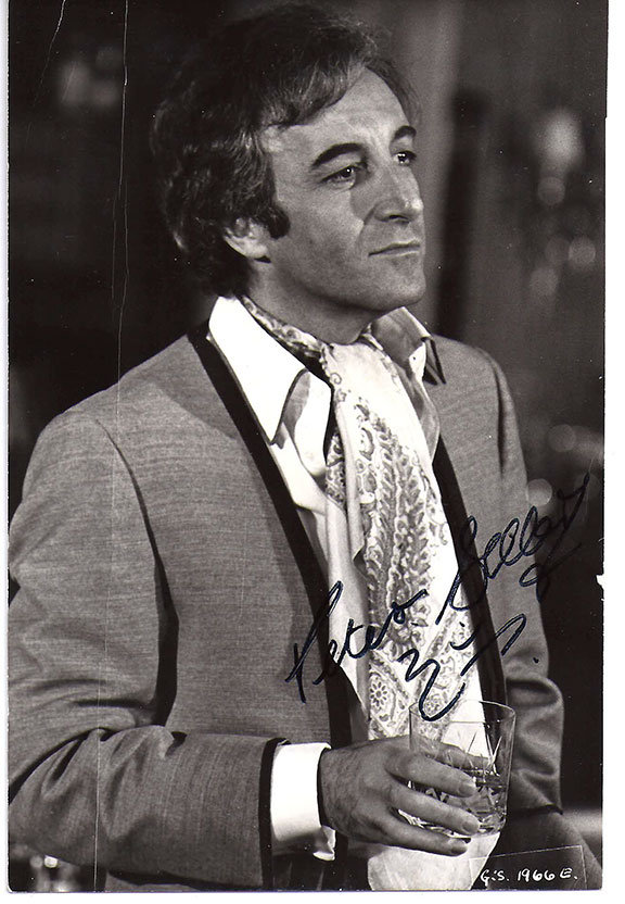 SELLERS, Peter (1925-1980).  British actor and late star of the Pink Panther series.  Photograph, 4’x6”, B&W, half length pose holding a cocktail.  Boldly signed. One light crease down left side otherwise fine and quite scarce