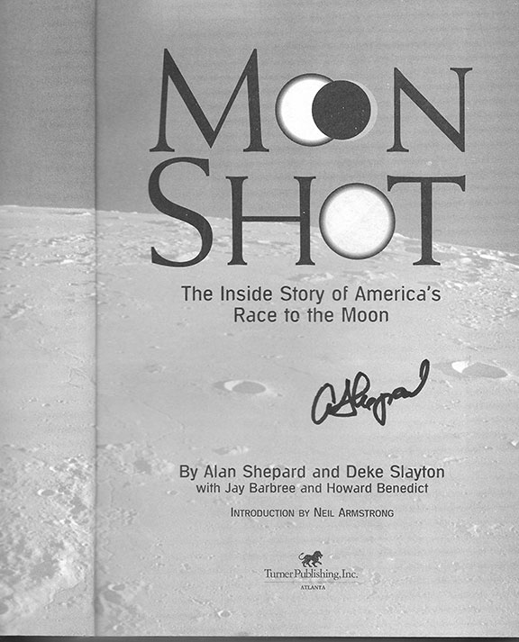 SHEPARD, Alan (1923-1998) American astronaut. One of NASA’s first seven astronauts. First American in space, fifth and oldest person to walk on the moon. His book MOON SHOT, Turner Publishing, Inc., 1994, First edition so stated paperback, heavily illustrated, 383 pages, hand signed on the title page. In V/G condition despite a minor crease near the bottom of the front cover.......$129.50![]() ![]() |