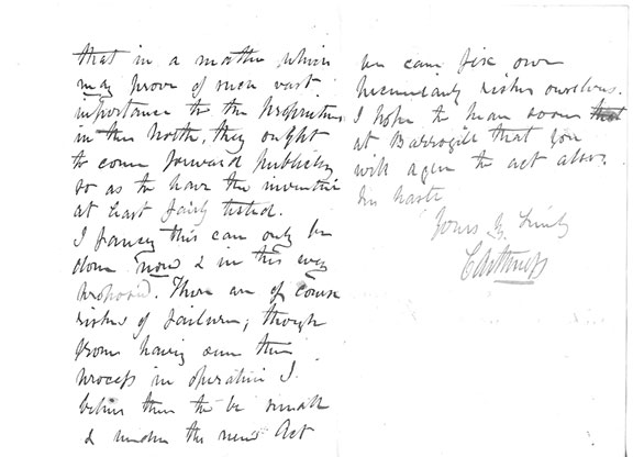 SINCLAIR, James (1821-1881). 14th Earl of Caithness. Scottish Liberal politician, scientist and inventor. He was the inventor of the steam carriage, the gravitating compass, and a tape-loom. He introduced “steam’’ to Caithness and first came his “steam car” in 1860, an early form of transport, followed by a steam plough which he used to create his new farm at Philip Mains, Mey. He also invented an automatic rail-carriage-washer for the American market. One of his most unexpected inventions was an artificial leg, with which he won a prize at the French Exhibition in Paris in 1866. In 1877, he published “Lectures on Popular and Scientific Subjects.” Rare autograph letter signed, ‘Caithness’ 3 pages 7X4”, dated 9 August 1856, to ‘My Dear Lock’, about giving the Fuel Company “a fair trial.” Together with a First Day cover of the steam car/carriage. In very good condition.........$275.00
