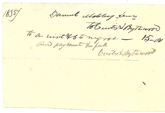 Autograph documents signed, dated 1835, measures 7.5”x4.75” “Daniel Mobley to Curtis L. Bythewood to a visit... to negroe-15.00. Rcd payment in full Curtis Bythewood.”  In fine condition................$250.00
