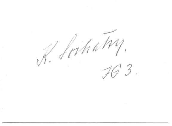 SOCHATZY, Kurt (1915-1996) German fighter pilot, awarded the Knight’s Cross of the Iron Cross. Claimed 38 victories with 35 on the Eastern front. Choice signature adding “JG3” in his hand. Not a common signature...............$37.50 |