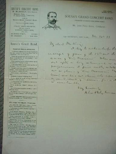 ornate letterhead comprising of his portrait and headed "Sousa's