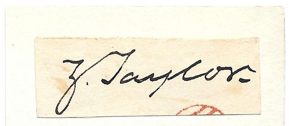TAYLOR, Zachary (1784-1850). Twelfth President of the United States. Fabulous ink signature most likely removed from a Free Frank. Affixed to a larger slip........SOLD