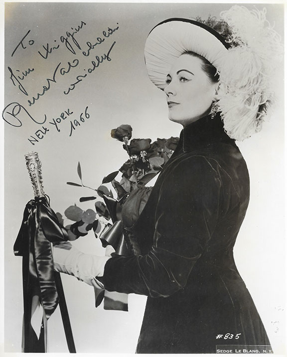 TEBALDI, Renata (1922-2004). Italian soprano, one of the most beloved and celebrated opera singers of the 20th century. Her voice is described as “angelic. Photograph, B&W, 8”X10”, three quarter length pose holding a bouquet of roses and a cane, in the title role of “Tosca.” Inscribed and signed: “To Jim Wiggens Renata Tebaldi, Cordially, New York 1966.” In very good condition.........$60.00