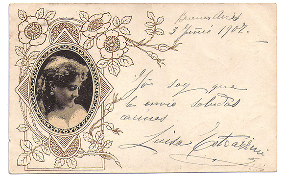 TETRAZZINI, Luisa (1871-1940). Italian Opera Soprano. Chicken Tetrazzini named after her. Autograph note signed, on the front portion of a postcard where her portrait is affixed. She has written: “Buenos Aires, 3 June 1907.” She has added several other words and signed her name in full. An attractive and busy looking item....... $165.00 |