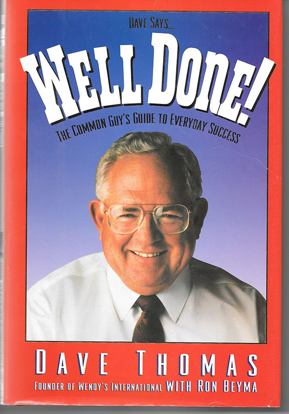 THOMAS. Dave (1932-2002) American businessman, philanthropist. In 1969, he founded Wendy’s Fast Food Restaurant in Columbus, Ohio. Wendy’s is the third largest hamburger chain in the U.S. In 1970 he opened a second restaurant featuring a pick-up window with a separate grill which was an industry innovation. In 1984, Wendy’s introduced “Where’s The Beef” which was the years most popular television commercial. His book: “Dave Says…Well Done! The Common Guy’s Guide To Everyday Success.” Zondervan Publishing House, 1994, First Edition. Two hundred twenty-four pages, illustrated. A fine copy with dust jacket. On the front free endpaper Thomas has written: “Thanks for supporting cancer research at the James. Dave Thomas 9/10/94.”..............................$57.50