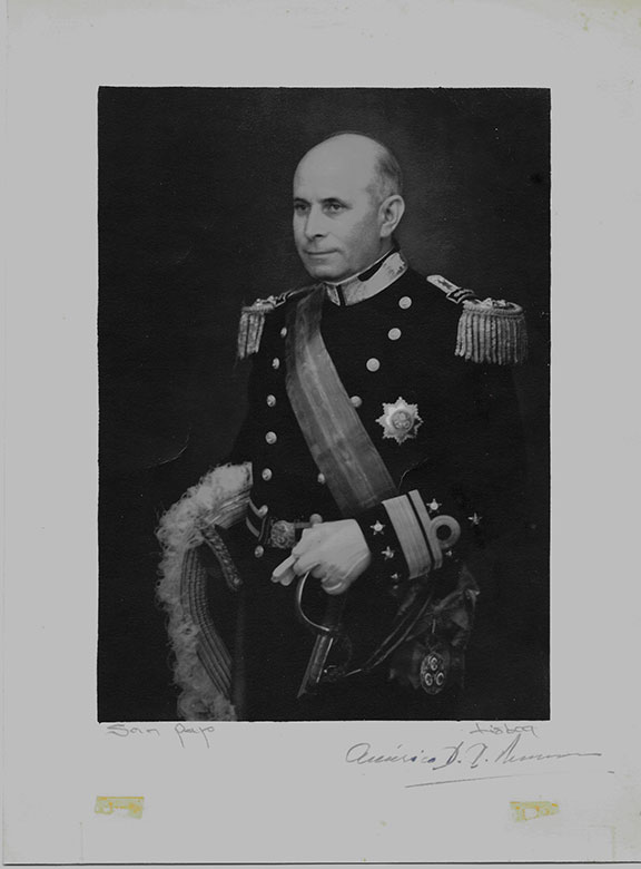 THOMAZ, Americo Deus Rodriques (1894-1987). President of Portugal (1958-74). His government was overthrown in April of 1974, Rear Admiral. Photograph 7”x9” in uniform holding his sword. Signed in full on the lower white margin. Signed by the photographer in pencil adding “Lisboa”. A very scarcely signed photograph and in very good condition. Two light stains easily matted out.........$175.00