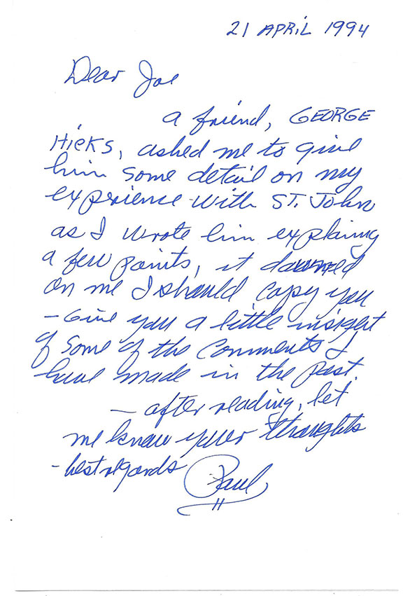 TIBBETS, Paul W. (1915-2007). Pilot of the Enola Gay. Interesting autograph letter, dated 21 April 1994, signed “Paul”. he writes in part: “A friend, George Hicks asked me to give him some detail on my experience with St. john as I wrote him explaining a few points, it dawned on me I should copy you- give you a little insight of some of the comments I have made in the past....” Fine condition...........$95.00![]() |