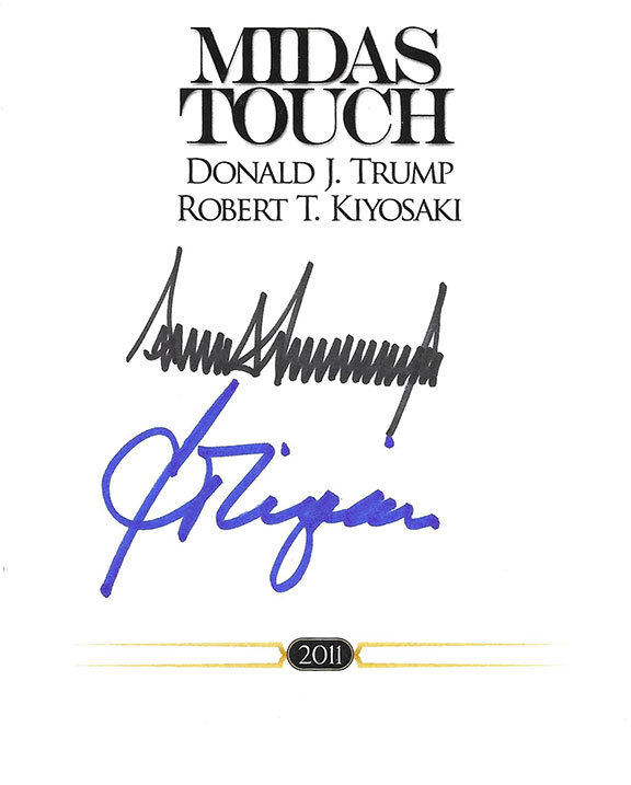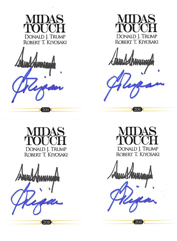Unused bookplate for their book "Midas Touch" 2011. Boldy hand signed by both, autographs are guaranteed 100% genuine. Trump has signed with what has now become an uncommon full "Donald J. Trump" signature. In MINT condition. These plates are over 13 years old. Multiple plates available.
