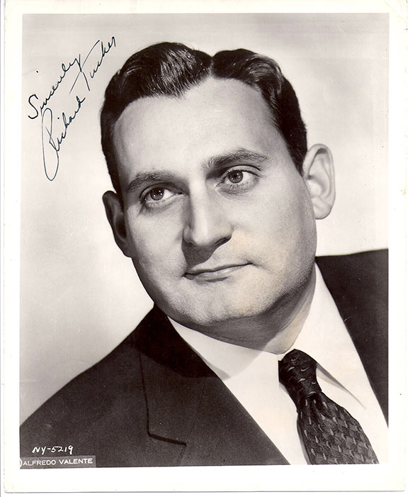 TUCKER, Richard (1913-1975). Jewish American Opera singer. Tenor. Photograph, 8”x10”, B&W, close-up head and shoulders pose, full face, signed in full with a one word sentiment. Excellent contrast.....................................$135.00![]() |