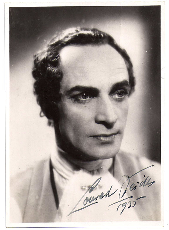 VEIDT, Conrad (1893-1943). German actor who appeared in Casablanca. He played the part of Major Strasser then died just months after the famous film was released. He appeared in many early horror movies like The Cabinet of Dr. Caligari and The Hands of Orlac. He starred in Anders als die Andern (German, 1919). This was the first movie to depict a homosexual relationship. A fine vintage photograph, 5”x7”, B&W, head & shoulders pose, full face. Boldly signed and date “1935”. Viedt is rather uncommon in any form and signed vintage photographs are especially desirable............... $250.00