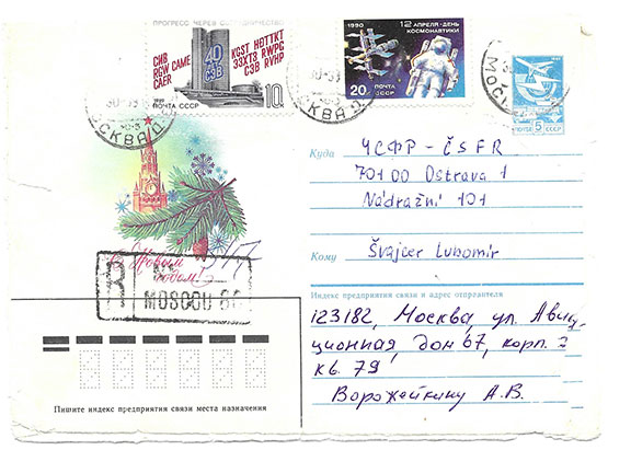 VOROZHEIKIN, Arseniy USSR High scoring fighter pilot. Ace credited with 52 victories in WWII along with 6 more in Mongolia in 1939. He flew with the 728th IAP. He was a two- time Hero of the USSR. Russian envelope addressed to a collector in Czechoslovakia. Colorful Russian postage stamps hand cancelled during the 1989 Xmas Holiday’s. The Ace has signed his name and added his return address. Cover shows light wear around the edges and the front has been separated from the back of the envelope however very presentable and a very scarce autograph...........................$225.00![]() |