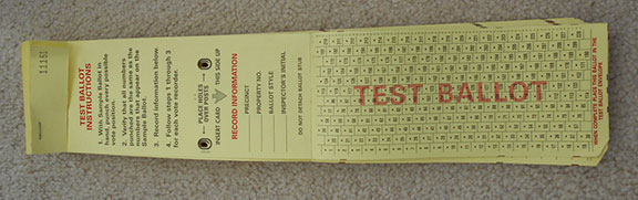2000 Presidential Election, Florida Voting Machine. Original complete voting machine used during the 2000 Presidential election of Bush vs. Gore. This was the closest presidential election in the Nation’s history being 537 votes separating the 2 presidential candidates in the decisive State of Florida. Tag affixed, which is numbered and adds “Supervisor of Elections, Collier County, Florida. Manufacturer, Votomatic. Unit is complete with legs, light and chad puncher. Unit measures 39” high and 61 inches high including the backs and sides. Weight 17 pounds. Folds into an attached aluminum locking case. These famous voting machines had punch cards which allowed hanging chads. Included is a pad of two dozen Test Ballots and instructions. Each ballot contains over 200 chads. A fabulous souvenir of a historic presidential election............................$850.00