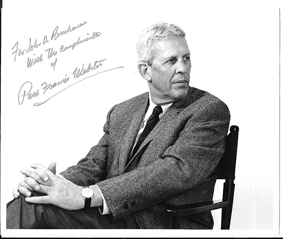 WEBSTER, Paul Francis (1907-1984). American lyricist who won 3 Academy Awards for Best Song. Most successful songwriter of the 1950’s on UK charts. Some of his hits are: “Secret Love” (1953), “Love is a many Splendored Thing” (1955) and “The Shadow of your Smile” (1965). Photograph, B&W, 8”x10” half length pose sitting in a chair. Inscribed and signed. Very nice..............SOLD![]() |