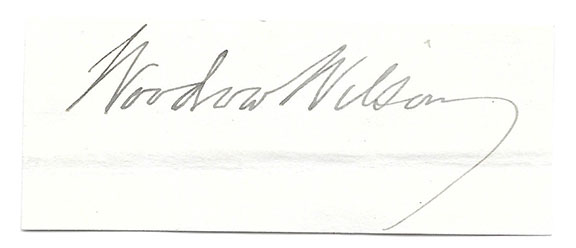 WILSON, Woodrow (1856-1924). Twenty eighth President of the United States. Excellent signature on a slip.................SOLD