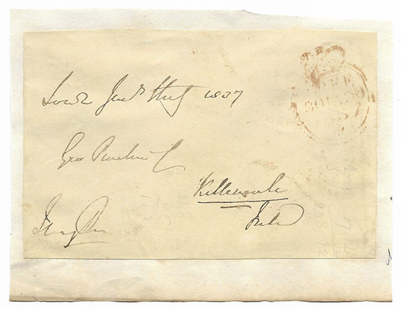 WINDSOR, Henry Thomas (1746-1848) Owner of The City Dispatch Company of New York City which issued the 1st postage stamp in the United States. A black/grey 3 cent stamp depicting the head of George Washington. In April 1841 Windsor left Liverpool reaching New York in May. He was familiar with the English Postal System, so he decided to establish a private post in New York City. A few months after founding The City Dispatch Company he sold it to the U.S. Government. After the sale, Windsor and his wife returned to London. Windsor’s stamp followed Great Britain’s Penny Black by only 21 months. His stamp was the 1st postage stamp issued in the Western Hemisphere. Very scarce front of an envelope stamped in red “Free.” Free franking signature of Henry Windsor at the bottom left corner. Affixed to a larger leaf. In V/G condition...............$250.00