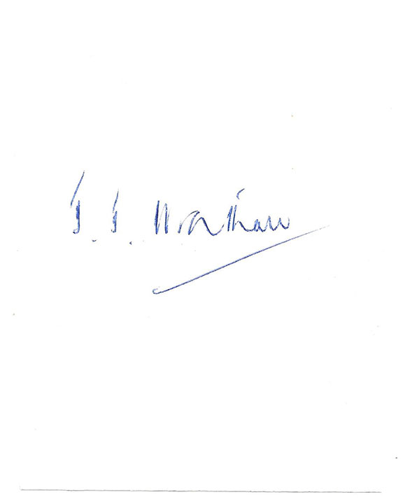 WRATHALL, J.J.  (1913-1978).  Second President of Rhodesia (1976-1978).  Masterminded his country’s battle against trade sanctions.  Uncommon signature on a 3.5”x5” card. Quite scarce...
