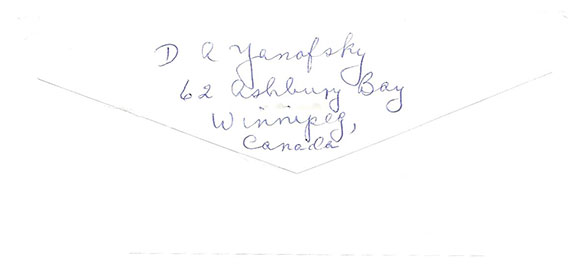 YANOFSKY, Daniel (1925-2000). Canada’ first Chess Grand master. Eight time Canadian Chess Champion. Born to a Jewish family in Poland. He won his first Canadian Chess Championship in 1941 at the age of sixteen. He became the first grand master raised in the British Commonwealth. He appeared in eleven Olympiads. Back flap of an envelope where he signed his name and written out his return address. Not a common autograph........$40.00![]() |