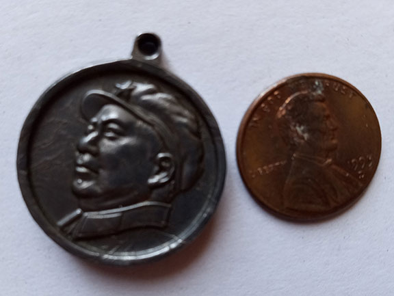 ZEDONG, Mao  (1893-1976)  Chairman of the Chinese Communist Party and Founding Father of the People’s Republic of China. Genuine meteorite, weight 16 grams, skillfully carved with a portrait of Mao Zedong. Hole at top for a chain. A choice example and an excellent likeness of the world leader.........$135.00
